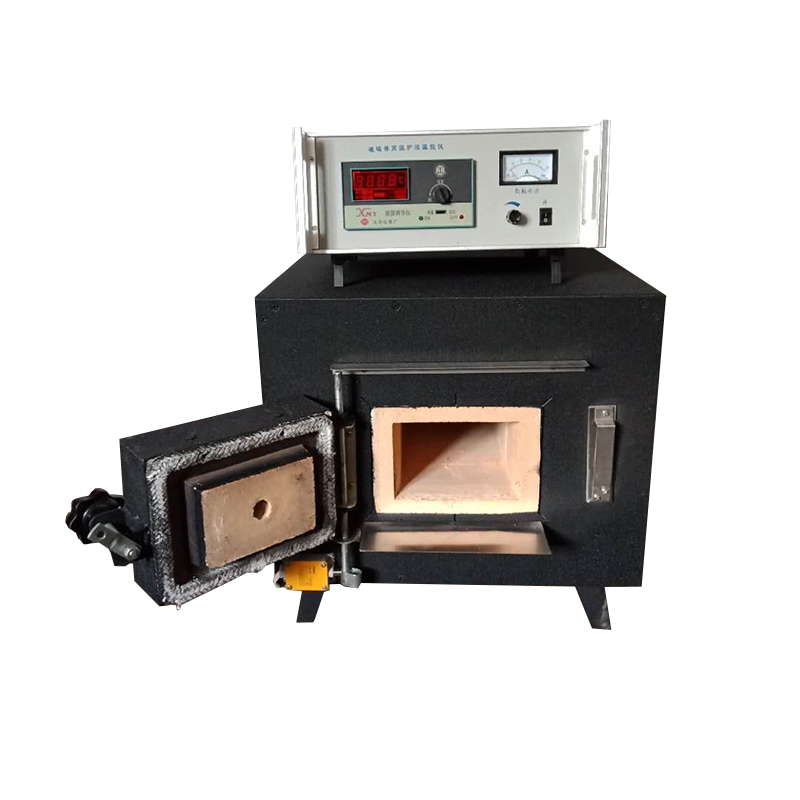 高溫爐外殼由鋼板制成,爐膛采用耐火材料。在爐膛與爐體外殼之間砌筑輕質保溫磚,充填保溫纖維。發熱元件硅碳棒分布于爐膛兩側。為了操作安全,在爐殼上裝有限位開關。當爐門打開時,高溫爐自動斷電;爐門關閉時,高溫爐通電加熱。