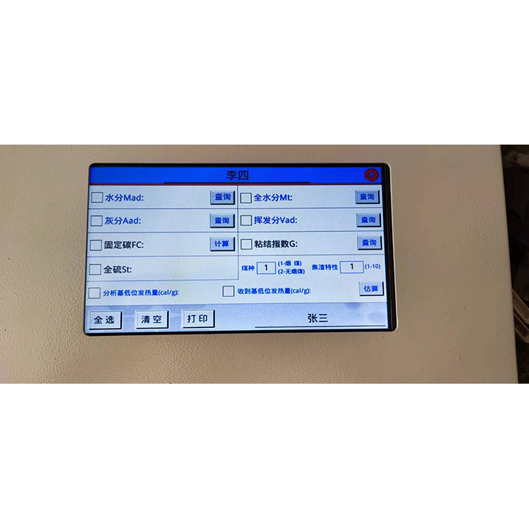結果快速計算:與電子天平連接后能自動計算灰分、揮發、固定碳、全水、分析水、粘結指數等實驗結果。