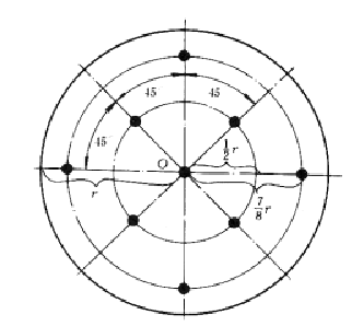 3.9.2 除使用一次就能縮分出測(cè)定全水分所需數(shù)量的煤樣的縮分機(jī)外,煤樣破碎到規(guī)定粒度,稍加混合,攤平后用九點(diǎn)法(布點(diǎn)如圖3)縮分。全水分煤樣的制備要迅速。