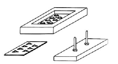 (5)灰錐托板模子(圖4):由模座、墊片和頂板三部分組成,用硬木或竹制作。